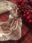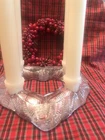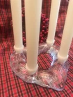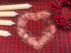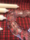 Swedish Advent glass candle- holder Nybro- Brand From Sweden Heart-Shaped. Beautiful heart shape with leaf details. Four spaces for candles/Maker’s sticker is in good shape. Holder only. Makes a lovely centerpiece or gift.