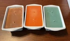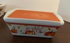 These are 3 ceramic 12 oz loaf pans made into super scented 2 wick candles made with natural scents and 100% soy wax for a nontoxic fresh autumn scent to fill your home for the holidays. Packaged in individual boxes, they could make great gifts, too! The first scent is “Welcome Fall” which is like taking a walk in the middle of fall. Scent two is “Grateful“, (pumpkin Marshmallow) which is like a visit to a pumpkin patch, with the scent of marshmallows roasting nearby. Scent three is “Gather”, which is the aroma of freshly fallen leaves, with hints of Apples, berries, cinnamon and oranges- all these in reusable ceramic, dishwasher safe loaf pans! Trust me, the scent of the 3 of these together is heavenly! Your mailman will not want to part with your package! Each candle is packaged in a heavy duty white flip top box which is beautiful for gift giving or a delightful hostess gift.