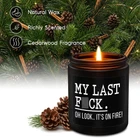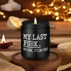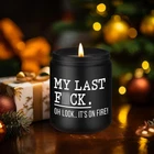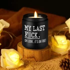 Funny gifts for women or men; The calming candle with its humorous saying becomes a great present for her or him and makes someone's day brighter; Relaxation gifts for women, friends, best friend, BFF, bestie, mom, dad, grandma, grandpa, wife, husband, girlfriend, boyfriend, sister in law, sister, brother, niece, cousin, neighbor, college freshmen, coworker, boss, manager, social worker, or anyone appreciate a little humor Gifts for many occasions; Great for coworker Christmas gifts, relaxing gifts for women, funny office gifts, cool gifts for bosses, friends birthday gifts, Valentines Day, Mothers Day, Boss Day, Thanksgiving, white elephant, stocking stuffers or just because gifts More premium scents to choose from: lavender, balance & harmony, and cedarwood; Infused with notes of crisp floral scent, blended with a refreshing herbal aroma, the lavender fragrance adds enjoyment to your life; Our balance & harmony scented candles are infused with the blend of essential oils that promote relaxation, calmness, and peace of mind; Filled with deep notes of cedar, our masculine candle captures the ambiance of lush fresh woodsy and ensures a memorable fragrance experience Made from wax; Our candle burns evenly and clean; Suitable for your home, bedroom, kitchen, bathroom, living room, office and so on Burns for 50 hours; 9 ounces scented candles; Well protection with inner sponge mat Product Description Our candles with the humorous saying "My Last F-ck. Oh Look..." become funny gifts for him or her. Great relaxing gifts for women, men, coworker, boss lady, dad, mom, friend, BFF, wife, husband, girlfriend, boyfriend, sister, brother, manager, or anyone who enjoys a little humor. Lavender Fragrance Radiating with a floral scent and herbal aroma, the lavender fragrance adds enjoyment to your life. Cedarwood Scent Our masculine candle captures the ambiance of fresh woodsy and ensures a memorable manly fragrance. Lavender Fragrance Radiating with a floral scent and herbal aroma, the lavender fragrance adds enjoyment to your life. Balance & Harmony Infused with a blend of essential oils that promote relaxation, calmness, and peace of mind. We have different colors and scents to choose 1 Brown - Lavender 2 Black - Cedarwood 3 Ombre - Lavender 4 Balance & Harmony Novelty Gifts for Many Occasions Packed in a delicate box, our scented candles are well presented as relaxing gifts for women or men, relaxation gifts for women, funny Christmas gifts for coworkers, cool gifts for boss, funny gifts friends, cheer up gifts, funny office gifts for coworkers, friends birthday gifts. Also great for Mothers Day, Boss Day, Thanksgiving Day, white elephant, stocking stuffers. Stylish & Elegant Home Decor Enhance your home with our scented candles, a stylish complement to your decor. With their long-lasting aroma, you can unwind, rejuvenate, and create a space where the hectic pace of life takes a back seat, allowing you to connect with your inner tranquility. Other Funny Gift Options If you're not satisfied with our candles, maybe you can check out this fun gift. Come and check it out. Is it blocked like in the picture? No. It was not blocked. Are your scented candles safe to use? While our scented candles are safe when used properly, we recommend keeping them out of reach of pets and children and never leaving them unattended. Are Fairy's Gift candles made with natural ingredients? Yes! We use a combination of natural wax and essential oils to create our scents. Is it possible to include a gift message with the item? Certainly, you can select 'This is a gift' when ordering and provide your message in the designated space.