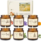 About this item 8 Pack Amber Jar Aromatherapy Candles: Rose & Ganetberry, Eucalyptus & Mint, Cedar Teakwood, Smoke & Vanilla, Sweet Grapefruit, Ocean, Amber Sandalwood, Fig. Home Candle Set Gift: Each candle weighs 3.5 oz, 2.4*2.5 In, retains fragrance for 25-30 hours, burns without black smoke, upgraded wick does not break easily, and can burn soy wax completely to the bottom of the jar. Natural Soy Wax Candle: Made from premium soy wax and 8% premium oils without bad ingredients. Equipped with the cotton wick minimize soot and irregular lump. Calming and Relaxing Candle: These candles can help to calm the relieve anxiety, creating mood, relief, and relaxation for you and guests, It is a very suitable scented candle for home use. Perfect Candles Gifts: Amber jar candles come with a vintage giftable box, This scented candle box is well designed with giftable packaging, making it perfect for birthdays, anniversaries, Father's Day, Thanksgiving, Christmas or other holidays. 6 Pack Amber Jar Candles: Our exclusive set of 6 candles exudes a range of charming aromas to delight your senses Vanilla Cake, Sage, Lavender, Pumpkin Chai, Fir, Cinnamon apple Each scent is a unique journey, suitable for any mood or occasion, and you can enjoy their charming fragrance throughout your home. Natural Candlestick Flavor: Carefully crafted with 92% premium soy wax and 8% premium oil, it contains no harmful ingredients, bringing you peace of mind and health. Equipped with cotton wick to minimize the production of ash and irregular lumps, ensuring the purity and stability of the burning process. Long Burning Time: Each candle weighs 7.5OZ (2.4" L x 2.5" H), and the use time is about 20 to 25 hours, 6 candles for a total of 120 to 150 hours. Soy candles are more practical, allowing you to enjoy a long-lasting atmosphere of happiness. Selected Materials: Aromatherapy jar candles are made of natural soy wax and cotton wicks, burning evenly and cleanly, with a fresh aroma. Our packaging is non-disposable inner and outer packaging, exquisite outer kraft paper and reusable amber glass jars, ensuring that you have a comfortable environment wherever you go. Candle Gift Set for Women: This candle set has magical power, exudes pleasant aroma, brings calming, soothing and balancing effects. It is a perfect embellishment for spaces such as bathroom, bedroom, kitchen, living room, office, etc. Choose this decorative candle to fill your life with relaxation and fun, and make every moment a beautiful memory.