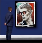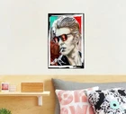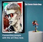 This is a medium-sized framed canvas print featuring a portrait of David Bowie. Produced in 2022 in the United Kingdom, it is a licensed reprint with vivid color options. It can be personalized with a photo provided by the customer. The artwork is wall hanging and comes size 50x80 cm and framing . Ideal for fans of David Bowie looking for unique and personalized wall art.