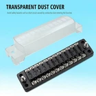 Product Description 12 Way DC12V-32V Automotive Blade Block Holder w/ Screw Nut Terminal Fuse Box Holder For Car Truck Vehicle Marine Boat Add our listing to Watchlist Or Add to Cart , you will get more discount Specifications: Voltage: <32V Maximum current: 100A; per circuit: 30A Applicable fuse: medium insert fuse Applicable terminal: the input terminal can reach #4-6 AWG line; output: up to #12-16 AWG line 1. Provide Additional Protection for the Circuit - fuse block can withstand a maximum current of 100A, per circuit does not exceed 30A, can provide additional protection for the circuit, to avoid circuit overload damage. 2. Safer to Use - The base is made of environmentally friendly material PBT, which is heat-resistant and flame-retardant, with better insulation, strong hardness, and safer use. 3. Strong Dustproof - With PC material insulation shell, easy to install, dustproof and splashproof, better protect the fuse and fuse box. 4. Easy to Identify and Find - Additionally equipped with a device name tag, allow you to quickly find which device is going wrong, saving your time. 5. Wide Application - Suitable for all DC power vehicles up to 32V, including cars, boats, SUVs, RVs, etc. Better circuit protection! The 12-way fuse box is suitable for DC circuit connection within 32V, with the maximum load circuit of 100A and no more than 30A for each circuit. The high hardness base made of PBT environmentally friendly material has good insulation, heat resistance and flame retardancy, safer to use. PC shell can be installed and removed by twisting the nut, very convenient, dustproof and splashproof, to avoid the damage of the fuse from the surrounding environment. Equipped with the name of the device sticker, according to your own needs to paste different labels on the dust cover, easy to identify and find the fuses for different devices. Package includes: 1x 12-way blade fuse block 24pcs Fuse 4x screws 2x stickers eBay Cross Border Trade powered by ChannelEffect