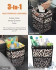 3-in-1 Multipurpose Container With 2-gallon Capacity:A game changer for a car neat and organized! It is not only a rubbish holder and car storage organizer, but a nice portable cooler bag for your car. Mesh pockets provide convenient storage places for things like tissues, extra trash bags, and cleaning . The mesh pockets can hold anything you want to keep within arm’s reach in your car. Why not upgrade your driving experience today and invest in a Trash can for your car? Extra PVC Plate for Keeping Shape:Currently, many suppliers use cheaper side braces to maintain the shape of the garbage can in order to save product costs. However, in our tests, it was not only difficult to install but also unsatisfactory in maintaining its shape. After repeated design and testing, we added PVC plates to the front and back, which can maintain the shape of the trash can more effectively and conveniently for use without installation. Easy to Clean and Leak Proof Lining:Upgraded seamless hot pressing technology PEVA material lining to avoid leaking. Dry trash like napkins and receipts is easy to collect, but wet trash, like ketchup packets or juice boxes, tends to complicate your sanitation endeavors. Leaks make things wet, sticky, and sometimes smelly, so finding a waterproof trash can is a must for anyone who lets liquids into their car. Tips, our trash bin is a good wet umbrella storage for rainy days. Foldable Design& 2 Side Hooks:Compared with magnetic buckles, 2 side hooks can more effectively secure various sizes of garbage bags. You can place your car bin on the floor, or you can Pick a spot to anchor it with a hanging strap. The headrest and center console are perfect, your shift knob doesn’t count! Practical PU Leather Cover & Unique Trapezoidal Shape:A garbage bin without a lid is like a garbage display box, which is embarrassing when there are other passengers. A trash can with a lid can make it look cleaner and tidier. It can keep trash from spilling out while you're on the go, and helps cover the waste and unpleasant smell inside. Designed with a quick-sealing PU leather lid, which can put objects in by just pushing it through the lid, and it will shut off automatically.