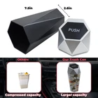 【Multipurpose】This small car interior organization can be placed at front cup holder and car door,backseat pocket, also can be used as a storage can on the desktop in the office or at home. Compact trash can is a good solution for ashtray, gum and candy bar wrappers in the vehicle. 【Space Efficient】 These organizers are lightweight and compact, only 7.5*2.6*2.6 inches and weighs 70 grams, and the diamond design can match any vehicle interior without being redundant, showing your unique taste. 【Convenient】Car garbage can features Push-Button cover which ensures the convenient using of the item. "PUSH"cover is easily opened and automatically closed,easily thrown into the trash. Car trash can is more than a car must have! 【Sturdy and Durable】Mini trash can, a reliable car accessory, is made from ABS Materials, which make every small trash can stronger and more hard-wearing.Totally sealed lid and special opening design effectively seal in any foul odor and keep the trash out of sight. 【Easy Cleaning】Designed with a leak-proof lining, this mini trash can is perfect for wet waste. Its smooth surface allows for quick and easy cleaning, ensuring hassle-free maintenance.