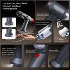 Car vacuums with best suction: The car vacuum cleaner portable cordless has a strong suction power of 21000PA, a brushless motor speed of 110000 rpm, and a power of 150W.effortlessly maintain your car's interior with the powerful suction of the Mini Vacuum, a compact yet robust car interior cleaner designed for car owners and office workers seeking a convenient cleaning solution 5-in-1 Dust busters cordless rechargeable: Portable vacuum for car, Multifunctional Mini Vacuum, Experience the convenience of cordless cleaning with the small vacuum cleaner cordless, perfect for quick clean-ups in tight spaces. ideal for homeowners and car owners alike, this handheld vacuum cordless ensures portability and ease of use, It also serves as Vacuuming, blowing, inflating, pumping, LED light,Comes with a comfortable and perfect storage case/bag/box,It is the best gift choice cordless handheld vacuum cleaner: Handheld Vacuum for Car cordless, The Electric Vacuum Cleaner has a Built-in high-capacity 3*2600 mAh 5c18650 power lithium battery, 7800mAh Rechargeable Battery and Fast Charging,ultra-long life, new upgrade Type-C charging interface, stronger and faster compatibility, hand held vacuum cordless support 2.0A fast charging small vacuum cleaner: The vacuum cleaner has a variety of accessories,handheld vacuum cleaner cordless including a very practical 7 Pack HEPA Filter Replacement Handheld Vacuum Filters, And our filter can be washed and reused, which makes it easy to replace car vacuum filters in case the filters are lost or damaged.keep your home and car spotless with the versatile vacuum, a reliable tool for both wet and dry messes. this vacuum cleaner cordless is a must-have for anyone needing a durable and efficient cleaning companion Vacuum Cleaner Unleash 21KPa Suction:The portable vacuum cleaner Has Two suction modes to easily pick up lightweight sand, dust, and small-scale debris. It takes about 6 hours to fully charge, and it can last for which can run for 20-40 minutes,2 adjustable gears - the first gear has a suction power of 12kpa, and the operation is to press the switch once for the first gear, and the battery life is 40 minutes to meet daily cleaning. The second gear has a suction power of 21kpa, and the operation is to press the switch twice for the second gear, and the battery life is 20 minutes to meet deeper and more efficient cleaning cordless vacuum cleaner pet hair: for those who need a reliable vacuum for pet hair, the pet hair eraser vacuum is a top choice. this cordless vacuum cleaner pet hair ensures a thorough clean, making it a favorite among pet owners and car enthusiasts