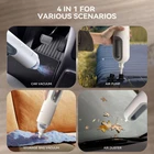 【4-in-1 Multifunctional Blow and Suck Design】: This handheld vacuum cleaner is not only a high power cleaning tool but also features a unique blowing function, equipped with multiple cleaning and blowing attachments to quickly clear hard-to-reach corners, seat gaps, and other hidden areas. This flexible design makes tackling various cleaning tasks effortless, whether it's removing dust, sand from your car, or pet hair at home. It also helps inflate yoga balls, swim rings, and other inflatable items, and can vacuum various space-saving storage bags. 【9300PA High-Power Suction】: With a maximum suction power of up to 9300PA, this handheld vacuum easily removes all types of dirt and debris. Its unique two-speed suction adjustment allows you to flexibly adjust the power according to different cleaning needs. Select high mode for maximum suction when tackling larger particles, while the low mode effectively conserves battery life for finer dust, ensuring each cleaning session is efficient. 【Sleek Design】: This vacuum cleaner features a minimalist and stylish design, weighing only 1.16 pounds, making it compact and lightweight. It offers a comfortable grip, saves space, and is easy to carry and store. The portable vacuum is also equipped with LED lighting, providing extra illumination for cleaning in dark areas or nighttime environments, ensuring you won't miss any small dirt. This design enhances cleaning efficiency and contributes to a safer user experience. 【Low Noise Design and Fast Charging】: This vacuum is designed with user experience in mind, operating at a noise level of under 80db to avoid disturbing environments during cleaning. It features a 100ml dust cup, ample for everyday cleaning needs and easy to empty. The Type-C charging interface allows for rapid charging, taking approximately 2.5 hours to fully charge. The low setting runs for about 25 minutes, while the high setting lasts around 15 minutes, providing ample time for daily cleaning tasks. 【Widely Applicable and User-Friendly】: This handheld small car vacuum is perfect for cleaning cars, homes, offices, and pets. Its straightforward design makes it easy for anyone to use—simply press the switch to start cleaning. Additionally, its compact size and portability mean you can use it anywhere, anytime. Whether for daily commutes, household cleaning, or travel, it will be your reliable cleaning companion.