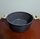 Carote Gray Speckled 6 Quart Nonstick Dutch Oven With Lid. Good Preowned Condition. There are some scratches on the lid, staining inside the pot, and burner marks on the bottom.
