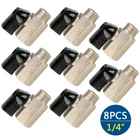 Specifications Material: Brass Working Medium: Water, Oil, and Heating Working Temperature: -10°C<t<110°C Work Pressure: 1.6 MPA Product Weight:60g/0.13lbs Handle Length: 21mm/0.82in Diameter: 12.7mm/0.49in Product Size: 40*36mm/1.57*1.41in Package Included 8*1/4" Ball Valves 💖welcome to my store💖 Specifications Material: Brass Working M edium: W ater, O il, and H eating Working T emperature: -10°C < t < 110°C Work P ressure: 1.6 MPA Product Weight : 60g/0.13lbs Handle L ength: 21mm/0.82in Diameter: 12.7mm/0.49in Product S ize: 40*36mm/1.57*1.41in Package Included 8*1/4" Ball Valves Key Features High and L ow T emperature-resistance : The working temperature of this ball valve made of high-quality brass is -10-110C°. Such excellent resistance to high and low temperatures allows this ball valve to work in a wider range of environments. High-pressure R esistance : The body of this ball valve is thickened and its working pressure can reach 1.6MPA, so it is more resistant to high pressure and safer than other ball valves. Easy to I nstall : This ball valve has delicate threads and is easy to install without welding. Sturdy and D urable : The compact structure and reliable sealing of this ball valve make it less likely to be corroded by media when in use. Long Service Life : The surface of this ball valve is nickel-plated. The nickel plating enhances the hardness and strength of the copper, thus increasing the service life of the ball valve. Easy to O perate : The simple structure of this ball valve makes it easy to start and close. The lightweight and small size of the ball valve make it easy to operate. Wide Application : This sturdy, durable, high-pressure resistant , explosion-proof , high-quality ball valve can be used not only for domestic water heaters and plumbing, but also for a wide range of industrial applications such as sports equipment, petroleum industry, chemical industry, and industrial drainage. Customer Service : We aim to provide quality products and services. If you have any problems, please feel free to contact us. We will reply and solve the problem for you as soon as possible . Details Thickened T hreaded P ort : The threaded hole of this ball valve is thickened, so it is more explosion-proof and leak-proof. Alloy H andle : The handle of this ball valve is made of high-quality alloy. The alloy handle is strong, durable, and easy to use. Thicker B ody : The thicker body has better pressure resistance , making this ball valve more robust and durable. Application This ball valve can be widely used in sports equipment, the petroleum industry, the chemical industry, industrial drainage, etc. Notes Please allow the slight color difference caused by the shooting light and 1-3 cm error due to manual measurement, and make sure you do not mind before ordering. Payment Delivery details Terms of sales About us Contact us Payment We accept ebay payment 。 Fees such as import duties, taxes are not included in the item price or shipping costs. These charges are the buyer's responsibility. Delivery details Shipping: 2-9 working days to: USA Terms of sales We maintain high standards of excellence and strive for hundred percent customer satisfaction. Feedback is very important to us. We hope that you contact us immediately before you give neutral or negative feedback, so that we can address your concerns. It is impossible to address issues if we do not know about them! About us Your satis faction is our ultimate goal. We work hard to earn your trust and future business. Our certified technicians have tested each item before shipping. The unit comes with 1 year limited warranty on all manufacturing defects. a) If you receive a defective item, you may return it or ask for a discount. Please contact us within 14 days after you receive the package. b) What you returned must be intact and in its original packaging as re? u. Customer is responsible for shipping costs of the returned item. c) We will cover the cost of shipping back t with the shipping rate indicated in the registration page. We will send you a new unit or refund the full payment you paid. Thank you. Contact us Business Hour Business Hour: Monday To Friday: 8:30 AM to 5:00 PM (Beijing China time) Due to time zones, our reply to your questions may not be immediately. But within above working time, we will reply your email within 24 hours. If it's non-workdays, please kindly be patient and wait till Monday. Please contact us with ebay message. Please feel free to contact us if you have any questions. Monday To Friday: 8:30 AM to 5:00 PM (Beijing China time) Due to time zones, our reply to your questions may not be immediately. But within above working time, we will reply your email within 24 hours. If it's non-workdays, please kindly be patient and wait till Monday. Please contact us with ebay message. Please feel free to contact us if you have any questions.