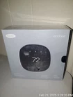 The Carrier Ecobee EB-STATE3LTICR-01 Smart Thermostat in Black is a programmable thermostat with advanced features designed for efficient heating and cooling control. It is powered by a 24V corded electric source and utilizes 5-wire configuration for installation. The thermostat, manufactured in 2020, is compatible with central heating/furnace systems and supports smart home integration with Apple HomeKit, Amazon Alexa, and Samsung SmartThings. It features a 3.5-inch digital display, 3 heat stages, and 1 cool stage, with programmable settings for up to 7 days. Additionally, it offers Wi-Fi connectivity, weather tracking, freeze protection, and can be controlled via a mobile app or touch screen interface.