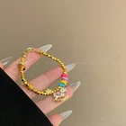 Gold Paper Clip Crystal Carabiner Charm Necklace Aruba Blue Lucky Evil Eye