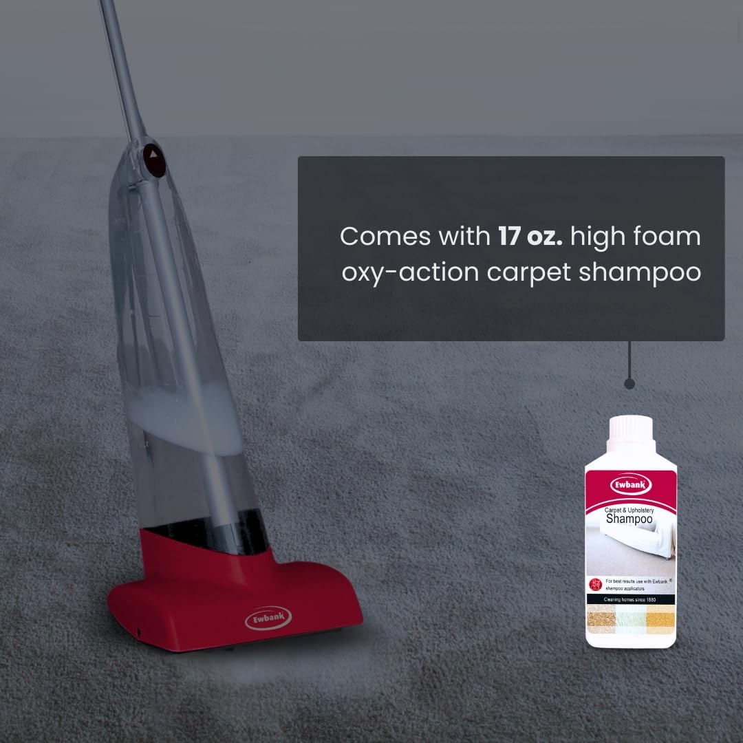 Effortless Cleaning: Clean carpets, and remove stubborn carpet stains with the lightweight, non-electric Cascade. Cordless Convenience: Manual shampooer operates without electricity or batteries, for ultimate flexibility. Large Capacity: 85 fl. oz. tank minimizes refills, maximizing cleaning efficiency. No more back-breaking carpet cleaning: Adjustable handle features a trigger that sprays cleaning solution directly onto brushes for deep cleaning. Versatile Use: Perfect for high traffic areas, rugs, and spot cleaning stains. Includes a FREE 17 oz. bottle of Carpet and Upholstery Shampoo. Its high-foam action and powerful formula is designed to deodorize, deep clean, and remove stains. *Not an extractor. Dispels solution but does not vacuum up liquid.