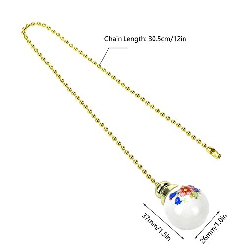 This ceiling fan pull chain extender is a fantastic upgrade! The ceramic pendant feels sturdy and adds a nice decorative touch. At 12 inches, the length is perfect for easy reach, and the white finish blends seamlessly with any fan. Installation was quick, and the quality exceeded my expectations. Fast shipping and great seller communication—highly recommend for anyone needing a reliable, stylish replacement!