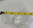 This charming ceiling fan light bulb cover features a beautiful flower design and a clear glass bell, adorned with vertical beaded lines. The cover is perfect for adding a touch of elegance and sophistication to any room, while also providing functional lighting. Measuring at an estimated width, the cover is sure to fit most standard ceiling fan light fixtures. Crafted from high-quality glass material, the cover boasts durability and is easy to maintain. The clear glass allows for a bright and clear illumination, while the flower design adds a touch of whimsy to any space. Whether you're looking to add a unique touch to your home decor or upgrade your ceiling fan lighting, this cover is the perfect choice. Fit's most normal size light bulbs See pictures for measurements