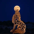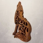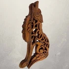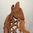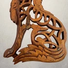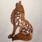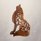 Celtic Howling Wolf Wildlife Wall Art Wood Carving sculpture has been hand carved on the Island of Bali from two tonedsuar wood. A wolf howling, nicely detailed with celtic knots. The wood is stained l & lightly waxed. Approx. size: 12" tall x 8" wide x .75" deep Suar wood Hand Carved by Village Artisans Bali Indonesia