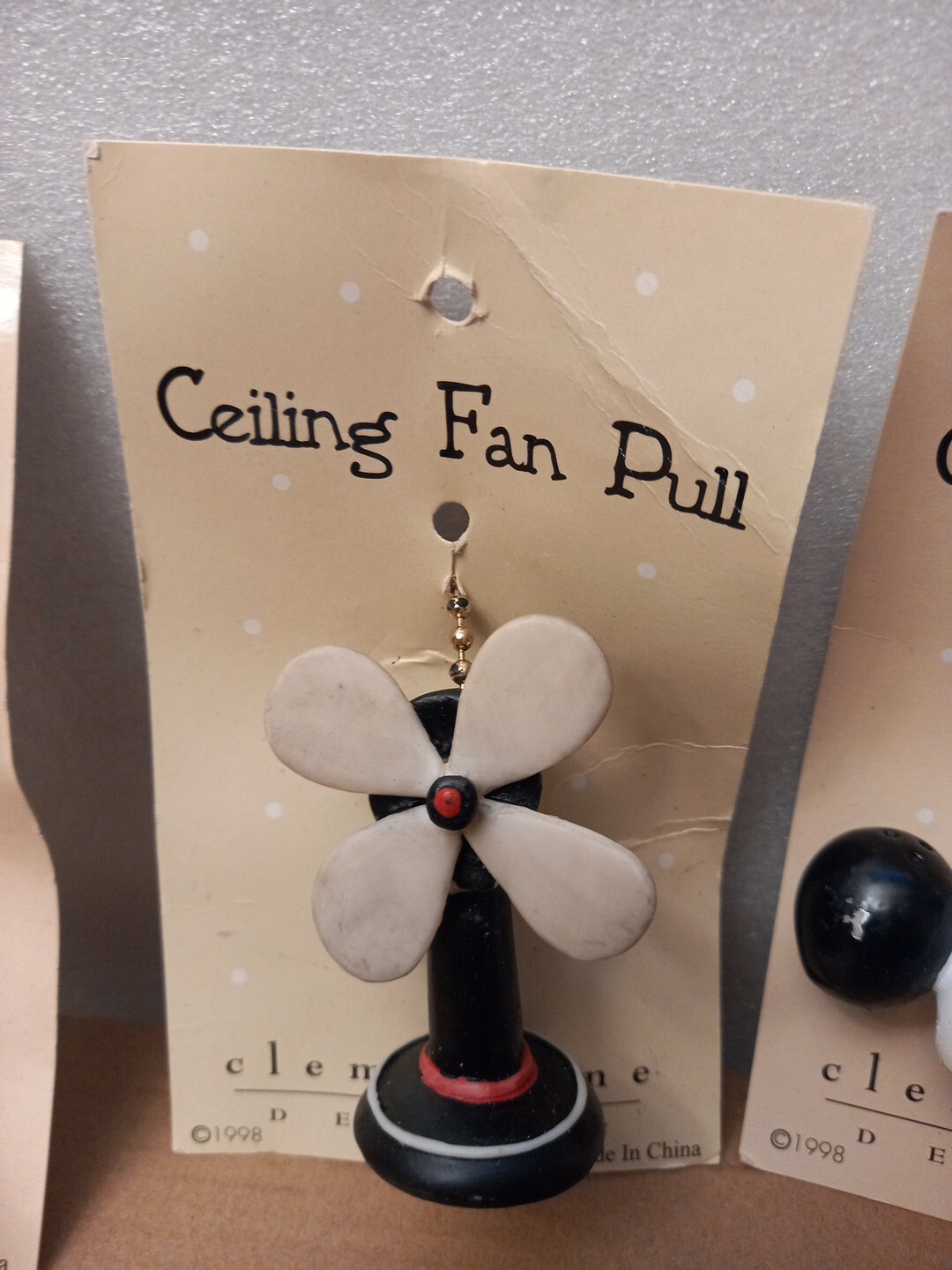 **NEW** Vintage 1998 Clementine design ceiling fan/light pulls with chain. Various sizes approximately 2-3" inches. Listing is for one only. 1 shipping charge only when buying in multiples Please see pictures for more detail and description. Questions do ask ***List of ceiling fan pulls as pictures.*** Fan# 027 Computer#045 Bowling Pins