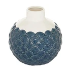 Each coastal vase for home decor is molded from stoneware, showcasing the beauty of its materials. The polished blue vase for flowers is round with shell patterns. Wipe clean with a dry cloth. The blue centerpiece vase is perfect for adding a coastal touch to any room, whether it's the living room or bathroom. Designed with felt or rubber stoppers at the base that prevent scratching furniture and table tops, as well as sliding around. This item ships in 1 carton. Suitable for indoor use only. This item ships fully assembled in piece. This is a single blue colored vase. Coastal style. Vase has a 3 in mouth opening. COASTAL HOME DÉCOR VASE: Inspired by blissful and the allure of the sea, where soothing hues and natural textures bring effortless charm to the home CERAMIC VASE FOR CENTERPIECE: This blue decorative vase is made from high-quality stoneware BLUE AND WHITE VASE FOR FLOWERS: The round home decor vase features a polished blue and white finish with intricate shell designs ROUND VASE FOR HOME DÉCOR: The stoneware vase boasts detailed craftsmanship and a glossy surface, perfect for adding a coastal and elegant touch to your decor SMALL SIZE FLOWER VASE CENTERPIECE: The blue ceramic vase measures 8.4L x 8.4W x 8.6H inches, and weighs 2.79 lbs