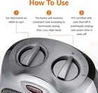 CUSTOMIZABLE HEATING OPTIONS: Choose from three settings to suit your needs - High (1500W), Low (900W), or Fan Only for air circulation without heat. COMPACT & PORTABLE: Weighing just 3 lbs and sized at 7.5“L x 6.3”W x 9.5“H, this space heater is easy to move and perfect for your Home, Office. CERTIFIED SAFETY: TÜV-Certified for peace of mind, with built-in Tip-Over Protection, Overheat Protection, and a Power Indicator Light for safe operation. RAPID HEATING TECHNOLOGY: Ceramic heating provides fast and efficient heat in minutes, keeping you warm quickly on cold days. NOT FOR HUMID ENVIRONMENTS: Please avoid using this heater in Bathrooms, Laundry Rooms, or other high-moisture areas. Product Description Amazon Basics 1500W Ceramic Personal Heater with Adjustable Thermostat, Silver From the Manufacturer Amazon Basics