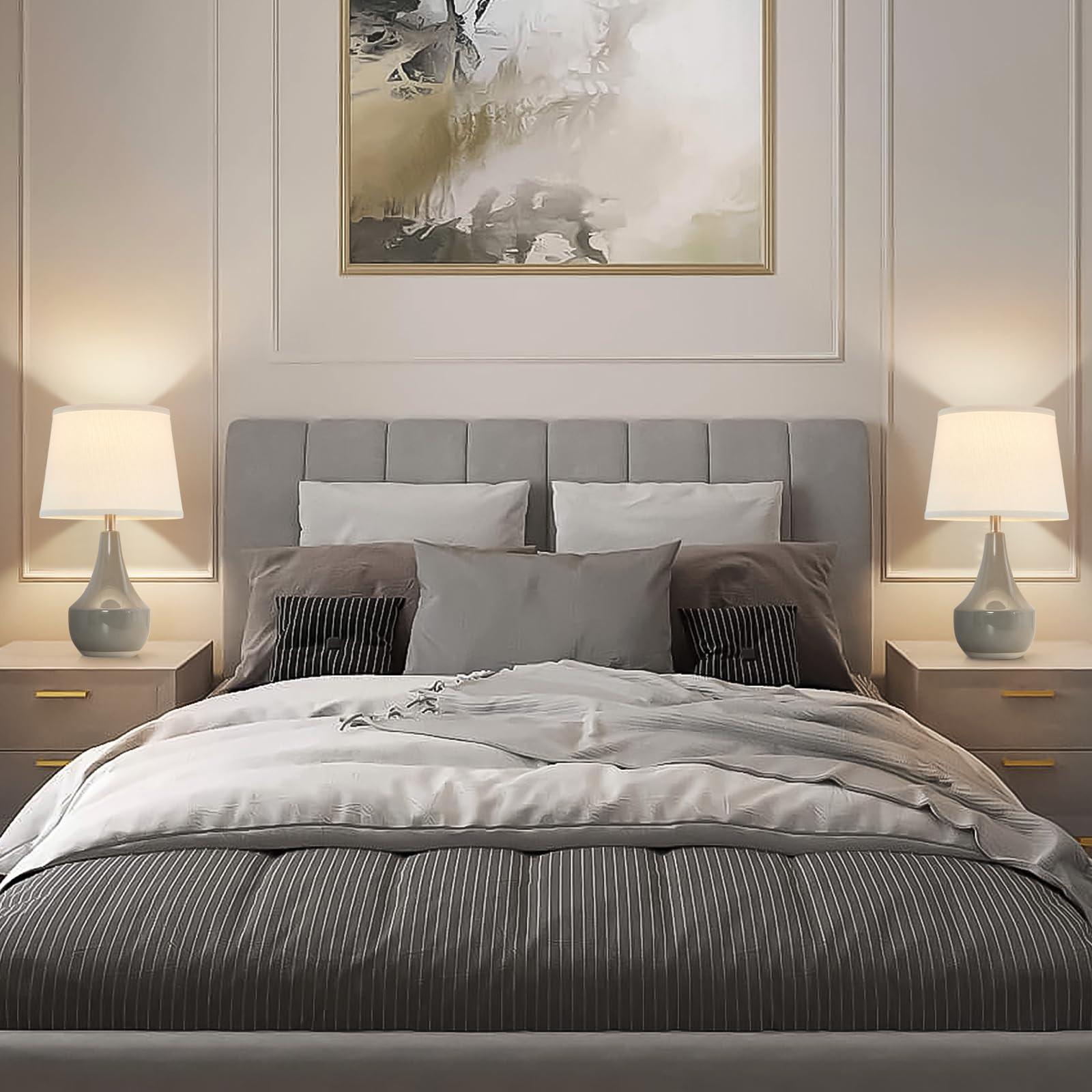 Absolutely love this set of ceramic table lamps! They add such a warm, elegant touch to my bedroom. The 3000K warm white light creates a cozy ambiance, perfect for relaxing. Assembly was a breeze—no tools needed—and the high-quality ceramic finish looks luxurious. The silver metal accents are subtle yet stylish. These lamps are both functional and decorative, making them a fantastic addition to any space. Highly recommend for anyone looking to upgrade their home lighting!