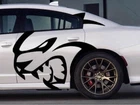 The product is a set of Charger/Challenger XL Rear Side Hellcat Decals designed for vehicles, particularly Chargers and Challengers. These decals are made of vinyl and are intended to be placed on the rear side of the vehicle. The design features a Hellcat motif on both sides, adding a graphic element to the vehicle's exterior. Perfect for those looking to customize their car with a sleek and unique touch.