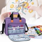 FABRIC: Crafted from durable heavy-duty nylon. NO ACCESSORIES INCLUDED. PROTECTIVE: Features thick padding sandwiched between layers of material to ensure your embroidery supplies remain in excellent condition. MAIN COMPARTMENT: Equipped with 2 inner padded sleeves designed to hold embroidery hoops (up to 11.2”) and an embroidery floss kit. Includes a spacious pocket and 2 mesh pockets for storing embroidery fabric, floss organizers, and more. FRONT ACCESSORIES STORAGE: Contains 4 elastic bands and pockets to securely hold marking pens, scissors, and similar tools. Additionally, there are 3 larger pockets for pin cushions, floss bobbins, and other essential accessories. PORTABLE: Dimensions of 15.25" x 3" x 12.5" (L x W x H) with sturdy handles and a detachable shoulder strap for convenient transport. Product Description FABRIC Constructed from heavy-duty nylon for lasting durability. Thick padding between layers protects your embroidery supplies from damage. Note: Accessories are not included with the bag. MAIN COMPARTMENT Features a large pocket and 2 mesh pockets to accommodate embroidery fabric, floss organizers, and other supplies. Includes 2 inner padded sleeves for safely storing embroidery hoops (up to 11.2”) and your embroidery floss kit. Designed with 4 elastic bands and pockets to secure marking pens, scissors, and other tools. 3 additional larger pockets are available for pin cushions, floss bobbins, and various accessories. ACCESSORIES STORAGE A back pocket is provided for storing small accessories, with the option to also store the shoulder strap. Dimensions: 15.25" x 3" x 12.5" (L x W x H). Equipped with sturdy handles and a detachable shoulder strap for easy carrying.