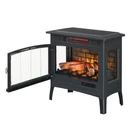 This electric fireplace stove is the perfect addition to any room, especially in small living spaces. Infrared quartz heat is energy-efficient, saves you money on gas costly bills, and is safe to use around children and pets. Experience all the beauty of a traditional fireplace with the realistic 3D flame effect; the settings can be adjusted to suit the room, the weather, or even your mood. Charming Design: Includes side viewing windows, a glass door that really opens, and a brick-style back panel. This stove heater not only enhances your décor but delivers infrared heat in any room up to 1,000 square feet. Easily carry this portable heater to any room you wish. Money-Saving Heater: Supplemental heating is an effective way to provide comfort to your home, without having to warm every room. Save money on your next energy bill by lowering the thermostat and using this using this heater when and where you need it most. Glowing Logs and 3D Flames: Bring the cozy cabin vibes to your home with the realistic flame effect. The glowing logs and soothing flames help you unwind as you relax on the couch and sip your favorite beverage; or, turn down the brightness levels for a perfect nightlight while you slumber. Year-Round Glow: With independent flame and heat controls, you can enjoy the cozy glow of your fireplace even while the heat is off for a beautiful ambiance in every season. Adjustable Settings:. Enjoy an adjustable thermostat and flame dial that will customize your fire to the ideal look and temperature.