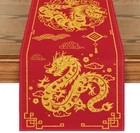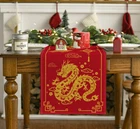 Chinese Zodiac Dragon 2025 Happy New Year Table Runner, Spring Festival Winter K