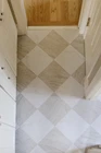 Peel and stick floor tiles designed by Chris Loves Julia with beige and white marble checker board pattern Peel and stick to apply Easy installation - no grout or special tools needed Water resistant and washable Virgin Vinyl material with a textured low lustre finish and permanent adhesive makes tiles durable Each pack contains 10 tiles covering and covers a total of 10 square feet Each tile measures 12 x 12 inches