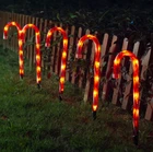 Christmas Candy Cane Lights Outdoor Pathway . If you are going to decorate your front patio decor of house for yard with Christmas candy theme of outdoor Christmas decorations. These Christmas candy cane sidewalk lights will work well for your candy Christmas decorations. The Christmas candy cane driveway markers is perfect for holiday candy cane Christmas outdoor candy décor. The warm soft glowing addition of these light up candy canes outdoor will decorate your indoor Christmas decorations and outdoor holiday decorations. The Christmas candy cane lights light up with a beautiful glow Christmas outside decorations and lawn Christmas decorations. And it is great to hang these candy cane Christmas lights on the window as window lights for traditional Christmas decorations. Candy cane pathway lights material are thick plastic, it is waterproof use for outdoor candy cane decorations, such as driveway decorations outdoor, lighted cross for yard, Christmas outdoor decorations lawn and candyland walkway decoration for Christmas. There are 7 incandescent clear bulbs on each string inside of plastic candy cane tube. Please check details for Christmas pathway lights outdoor if you are finding these candy cane Christmas ornaments for lighted candy canes outdoor Christmas decorations yard . The total length for the whole candy cane lights outdoor pathway is 6.3 feet, but the lighted length from the 1st candy cane to the last candy cane is 4 feet. And the lead wire length is 24 inch, the tail plug wire length is 4inch. The wire cable is white color. The white wires can be easily in the snow. This yard markers candy lights can connect up to 15 sets same candy cane lights for outdoor lighted holiday displays. The candy cane Christmas lights plug in 120v input voltage, this candy cane outdoor lights is safety for listed. Christmas Candy Canes Outdoor Decorations:Christmas pathway lights outdoor add nice touch to Christmas decoration outdoor candy decor. Christmas outdoor lights of candy cane Christmas decor is easy way to make outdoor Christmas light display stand out. It’s nice to use Christmas lights for pathway as a border for sidewalk from the driveway to the front porch as large outdoor Christmas decorations, or use candy cane ornaments like a fence outdoor Christmas decorations yard. Light up Candy Canes Outdoor Christmas Decorations:The red from the candy canes has a nice glow soft lighting make the driveway with warm atmosphere of Christmas holiday time. The Christmas candy cane lights is great for outdoor Christmas decorations. The candy cane sidewalk lights can be placed on sidewalk, driveway, yard lawn, hedges, front doors for Christmas candy outdoor holiday decorations and as Christmas lights for outside Christmas tree. Set of 5 Christmas Candy Cane Pathway Lights:The height for each Christmas candy cane lights is 12 inch. The driveway stakes height of 5"can go up inside the candy canes deep. The candy cane lawn stakes is long for covering deep ground. The spacing between each Christmas candy cane is 12 inch, all 5 candy canes are in string spaced evenly. The lead cord length before the first candy cane is 24inch,the last candy cane to the tail plug distance is 4inch.All outdoor candy canes length is 6.3FT. Easy to Set up for Candy Cane Christmas Outdoor Holiday Decorations: Please fit the wires in the slot of pathway light stakes, insert the stake into the cane bottom of plastic candy cane base, stake the plastic cane into the ground. Before plugging pathway light into the outlet, please be sure the candy canes fit rightly onto the top of the stake and then deep insert canes into the dirt or grass. It’s better to pre-dig hole for stakes if placing the candy cane lights into frozen or rocky ground. The driveway markers are 20"tall lighted candy canes large. The candy cane ground stakes height of 5"can go up inside the candy canes deep. The candy cane stakes is long for covering deep ground. The spacing between each candy cane is 20 inches, all 6 candy canes are in string spaced evenly. The lead cord length before the first candy cane is 24 inches, the last candy cane to the tail plug distance is 4 inches. A total of 10.66FT in length for all outdoor candy canes together.