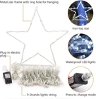 ⭐【Unique Large Christmas String Lights】Glowing in 320 LEDs, our Christmas string light also has a 12.6" metal star with the tail of 9 light strings, each string is 10.4 feet long and looks like a comet when falling down. Light up your house or yard with the outdoor Christmas star lights! ⭐【Outdoor Christmas Decorations】 Our Christmas string lights works great with trees from around 8 feet to 13 feet tall. You can also hang the treetop starlight to decorate your room, curtain, window, or outdoor yard. Simply hang the big star about 10 feet up on an exterior wall, then drape the 9 lights string down to the ground. You can also hang them sideways more like a shooting star. It will be a beautiful addition to the home or outside decorations. ⭐【8 Lighting Modes & Waterproof】 These falling star Christmas lights have 8 different light patterns to choose from: combination, in waves, sequential, slo-glo, chasing/flash, slow fade, twinkle/flash, and steady on. IP44 waterproof led tree decoration starlight is perfect for home indoor and outdoor decorations. Available to resist all types of weather well. ⭐【Easy & Safe to Use】Directly plugs in and unplug this led Christmas starlight for power on and off. With a 30V low-voltage adapter, the outdoor decoration star is safe to touch and will keep at a low-temperature state after lighting up for hours. Safe, power-saving, creating a dazzling light for your house. ⭐【 Christmas Decorations & Ideal Gift】 The star Christmas lights can be used for a tree, yard, outdoor, wedding, or Christmas, as well as great gifts for family, lovers, friends, colleagues, neighbors for holidays, New Year, birthday, wedding, festival, etc.