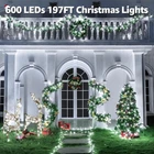 Super Long 197 FT: 600 LED Christmas lights outdoors the extension cord is 10ft. It is long enough to meet your indoor and outdoor Christmas decoration needs. The super long string, with romantic LED lights, brings a vivid experience during the festival 8 Modes & 4 Brightness Adjustments: Our outdoor Christmas lights come with 8 Lighting Modes and 4-level brightness adjustments. Different modes are suitable for various occasions, you can switch them by the remote control or the adapter according to your needs Remote Control & Timer: Our Christmas lights come with a remote control and have a time function and a memory function. Lights will auto on/off once set, Press the button on the remote control or adapter at will to get the Christmas atmosphere Widely Used: IP44 waterproof design of this Christmas decoration light makes it the ideal choice for both indoor and outdoor decoration. Creating a relaxing atmosphere, and fun for your family during Christmas, Thanksgiving, birthdays, Weddings, and anniversaries If you have any problem with the product, please feel free to let us know and our customer service team will give you a satisfactory solution within 24 hours Product Description