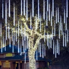 Color White Brand Joiedomi Indoor/Outdoor Usage Outdoor, Indoor Special Feature Waterproof Power Source Corded Electric Light Color White Theme Holiday Occasion Christmas Style Modern Material Polycarbonate About this item PERFECT SIZE. The White LED Meteor Shower Rain Lights have 10 tubes on one strand, each tube is 50cm long, 540 LEDs. EXTENDABLE. Designed with a connector that can connect more than 2 lights together to suit wider occasions. We recommend connecting at most 4 strings to ensure all the lights work well and get the best brightness. PERFECT DECORATION SUPPLIES & WIDE APPLICATION. Each of the outdoor lights fall in sequence then have a slight delay on each tube, just like a meteor shower or falling snow across the night sky, which shows a super beautiful display. They are perfect to decorate trees along street/park/ river, hang along the roof, great for market engineering lighting, urban and architectural beautification. Ideal for patio, yard, garden, hotel hall, shopping mall decoration. PREMIUM QUALITY & WATERPROOF. Made of premium PC material that is transparent, you can see the light glow clearly through the tube. The Christmas light is waterproof, ideal for indoor & outdoor decoration, please protect the plug from the water or heavy raining day. Dustproof, corrosion-resistant, cost resistant, aging resistant, more durable that will last several years using. Safety test approved. CUSTOMER SATISFACTION. Providing a great satisfaction experience is our main priority to our customers. Feel free to message us through “contact seller” if products don't meet your expectations.