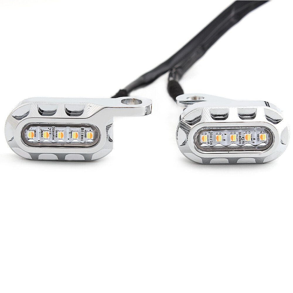 Product Description Specification: Condition brand new Voltage: DC 12V LED Lights Color: Amber Signals; White DRL Color/Finish: Chrome Metal Shell Clear Lens Size: As picture shown Type:LED motorcycle DRL turn signals indicators blinker light Wire Connection: Yellow Line:Turn Signal,show Amber light; White line:Running Light,show white light; Black line:Ground line Fitment: Fit For Harley Sportster XL 2004-2021 Motorcycles Package Included: 1Pair Mini Turn Signal Indicator Lights powered by