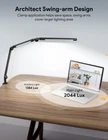 【Independent Control Dual Light Source & Eye Protection】: Our LED desk lamp is equipped with separate light sources to ensure even illumination of your workspace. Each light source can be controlled independently, meaning you can turn off light for a softer glow during reading or relaxation. This feature can also save energy. The LED lights are flicker-free and glare-free, nicely protecting your eyes during work or study 【16 Customizable Lighting Modes】: The desk lamp provides you with 4 different color temperatures (3000K, 4000K, 4800K, 5500K) and each color mode has 4 brightnesses (25%, 50%, 75%, 100%). Soft lighting is optional to prevent eye fatigue. With a memory function, the LED desk lamp will remember the last setting used and will turn on with those settings again for your next use. The LED desk light offers customizable lighting, perfect for studying, reading, and working 【Adjustable Swing Arm Lamp】: Desk Lamp with clamp features super flexible swing arms that can fulfill all of your lighting needs. With light bars (270°), three pivots (198°), and a clamp base (360°), the lamp is highly adjustable. You can easily adjust the lamp face towards the ceiling to create an ambient lighting. The flexible lamp can be clamped not on desks, but also on shelves for convenient and practical usage at multiple angles 【Safe and User-friendly】: The dual light desk lamp has a high-quality aluminum lamp body that provides superior heat dissipation, extending the lifespan of the lamp up to 50,000 hours. The metal clamp and strong pivots enhance stability and prevent the overhead lamp from falling down. The lamp meets FCC standards and the power adapter meets ETL standards, making it a safe and user-friendly desk lamp for a home office 【Strong Clamp to Save Spave】: The table lamp comes with an extra wide metal clamp(2.36 inches) with a silicone pad to prevent the table from being scratched. The clip holds tabletops up to 5.5 cm/2.2 inches thick and holds the swing arm lamp firmly in place. This space-saving design keeps the table clean and increases productivity in the workspace