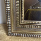 This stunning classic still life painting captures a beautifully detailed arrangement of fruit, a silver vessel, and a draped cloth, all rendered with masterful use of light and texture. The composition is both elegant and timeless, showcasing the artist’s skill in traditional still-life artistry. The artwork is signed in the lower corner, but the signature is not fully legible. Despite this, the piece exudes quality and craftsmanship, making it a wonderful addition to any art collection. Measuring 35 cm in width and 31 cm in height, the painting is framed in an ornate gold-tone frame that enhances its classic appeal. This piece is ideal for adding warmth and sophistication to living rooms, dining areas, or kitchens. We take great care to provide accurate descriptions, and we encourage you to thoroughly review the accompanying photos for a comprehensive understanding of the item's details. If you have any questions or need additional information, please don't hesitate to reach out to us.
