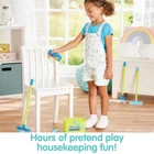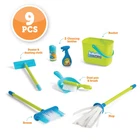 9 piece cleaning set for pretend play! Includes a broom, mop, duster, dust pan & brush, bucket, 2 simulated cleaning containers and a dusting cloth. Your will now have all the necessary tools to be a great helper when it comes to housework. Includes a broom, mop, duster, dustpan & brush, bucket with handle, 2 simulated cleaning containers and a dusting cloth.