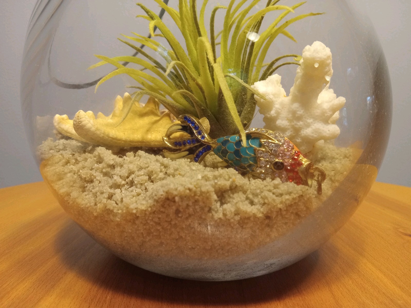 Enhance your space with the Round Clear Glass Decorative Tillandsia Terrarium, a chic and modern addition that brings a touch of greenery to any room. Crafted from high-quality glass, this terrarium showcases your favorite Tillandsia plants in a contemporary, artificial form that maintains their beauty without the need for watering or maintenance. Measuring at 6 inches in height and 5 inches in width, 2.6 lbs weight this houseplant arrangement is versatile for a variety of settings, from your home office to your living room. It's suitable for all occasions and does not require any personalization.