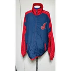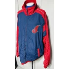 Excellent Condition Show off your support for the Cleveland Indians with this Majestic brand windbreaker jacket featuring the iconic Chief Wahoo logo. The jacket is a size XXL and comes in a striking blue color with accents of red. It is perfect for any fan of the Major League Baseball team and is made in Korea, Republic of. This jacket is a must-have for any Cleveland Indians fan. It is made of high-quality materials and features a full zip design for easy wear. The jacket is designed for men and is perfect for showing off your team spirit. Get yours today and add it to your collection of fan apparel and souvenirs!