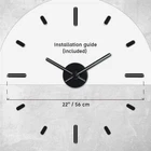 ABOUT THIS CLOCK -Chic and Reliable & Co x OnTime A great addition for chic home or office that suits everyone’s taste and brings any wall into life. This elegant clock design brings any space into life. (Hotel lobby, college dormitory living room, fireplace, bedroom,kitchen, patio, backyard, office, school, and cabin…etc.) Our reliable and accurate movement with sweeping technology makes no ticking sound to give you a tranquil atmosphere and sweet dream through the night. Novel and handy ways to install this clock makes it an award winning design. Clock makes a great gift ~ -Installation: 1. Peel the red film of the 3M VHB tape which is pre-pasted on the back side of Wall Hook and place the Wall Hook in the center of the spot you wish to hang the Center Clock Module. (Please make sure the magnet is at the 12 o’clock position and stays vertically) 2. Unfold the Installation Guide and follow the pre-cut pattern to paste the Hour Markers. Paste the first top half of the markers, then flip down the guide to finish the rest. 3. Adjust the time of the center clock module and Insert 1x AA battery (Not included) Put onto the wall to connect with the wall hook that has a magnet on it. (No drilling or Nailing needed) ** Always use the wheel on the movement to make time adjustment. -Features: Material-Aluminium Hands, ABS Plastic composite Movement-Sweep Quartz Movement ★【 Large and Easy to Read from Distance 】: 22 inch in Diameter. Large size allows everyone to see this stylish clock from far distance. ★【 Silent Clock Movement Mechanism】: No ticking sound at night gives you a sweet dream through the whole night. 1 x AA battery for operation, not included. (Update: Both Alkaline and Carbon Zinc batteries are compatible for the movement) ★【 Tool Free Easy Installation 】: No Drilling and No Tool Required. Simply find a spot for the wall hook, then follow the installation guide included for consumers to unfold and follow the pre-cut patterns to Peel & Stick Hour Markers (12 pieces) on the wall. Just that simple and easy! ★【Innovative Design Structure - Good Design Award 】: Wall hook with 3M VHB Heavy Duty tape and magnet allow consumers to avoid drilling the wall and keep the clock on the wall firmly. Reliable magnet keeps clock's center module connected to the wall hook stably and makes it easy to be taken down for battery replacement in a second ★【Glowing in the Dark / Creative & Stylish 】: This award winning clock will glow in the dark, bringing your wall to life. Fun and easy way to add a modern wall clock to any clock making projects. The center module by itself can also be used separately to customize your own style of wall clock and suitable for quartz clock repairing or replacement.