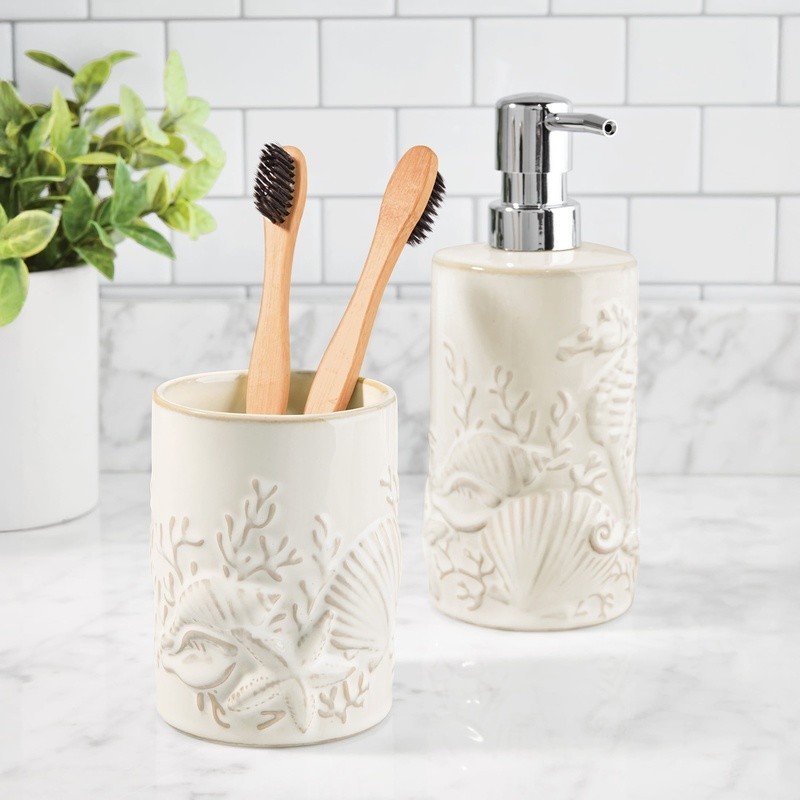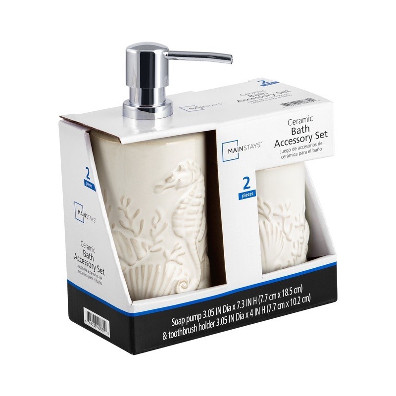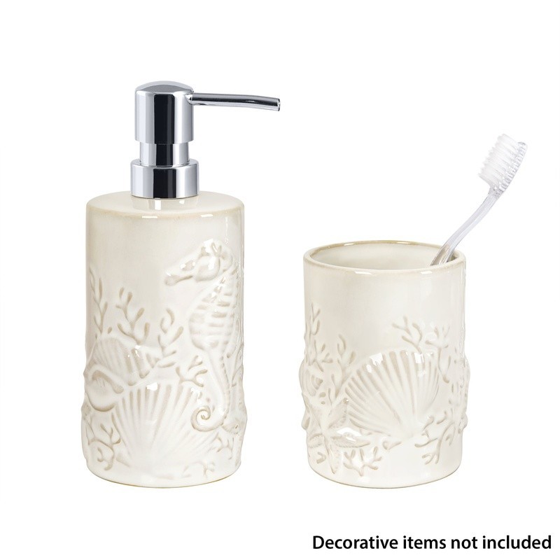 You may also like 5 Gallon Bucket Lid Opener Wrench, Plastic Bucket Opener Tool Pail Lid Lift 4.81 USD 5.12 USD Free shipping 6% off Mini Sewing Machine Handheld Cordless Hand Held Portable Easy Home Stitch Sew US 4.92 USD 5.23 USD Free shipping 6% off Fast Dissolve Zinc W/ Vitamin C Chewable Tablets Immune Support 150 Count New 8.69 USD 9.25 USD Free shipping 6% off Calcium Vitamin D Supplement 600mg Bone Health Support Tablets 250 Count New 8.92 USD 9.49 USD Free shipping 6% off Extra Strength Vitamin D3 Softgels 125 mcg 5000 IU Bone Immune Health 250 Count 10.02 USD 10.66 USD Free shipping 6% off Grape Cutter for Toddlers, Grape Slicer for Baby, Grape Cherry Tomato Slicer 5.35 USD 5.69 USD Free shipping 6% off Organic Valerian Root Capsules 500mg Sleep Support Non-GMO Gluten-Free 100 Count 8.66 USD 9.21 USD Free shipping 6% off Haunted House Cookie Jar Halloween Party Prop Spooky Food Storage Container New 18.55 USD 19.95 USD Free shipping 7% off 50pc 25mm Green Plastic Golf Tees Golfer Golfing Club Gifts New 4.78 USD 5.08 USD Free shipping 6% off Gourmet Dry Cat Food Chicken Turkey Crunchy Kibble Complete Nutrition 16.75oz US 7.52 USD 8.0 USD Free shipping 6% off Ol' Roy Complete Nutrition T-Bone & Bacon Flavor Dry Dog Food, 46 lbs 28.75 USD 30.91 USD Free shipping 7% off Extra Strength B12 Fast Dissolve Tablets Metabolism Support 5000 mcg 45 Count US 8.66 USD 9.21 USD Free shipping 6% off Dress your coastal inspired bathroom with decorative touches from under the sea with the Shell 2-piece Ceramic Bath Accessory Set. The set includes 1 soap/lotion pump with a plastic chrome plated pump for easy dispensing of your favorite liquid soap or lotion and a multi-purpose single opening container that can be used as a toothbrush holder to hold your bathroom essentials or a tumbler to use for rinsing. Each visually appealing piece is made of ceramic embossed with a textured medley of sea life, shells, and coral stems in a reactive-look finish in beige. Hand wash. Set includes 1 Soap/Lotion Pump and 1 multi-purpose piece to use as a Toothbrush Holder or Tumbler Features an embossed medley of sea life, shells, and coral stems in a reactive-look finish in beige Dress your coastal inspired bathroom with decorative touches from under the sea Soap/Lotion Pump: ceramic, 3. 05" x 3. 05" x 7. 30" with 8 oz capacity, Plastic chrome plated pump for easy dispensing of liquid soap or lotion Toothbrush Holder/Tumbler: 3. 05" x 3. 05" x 4. 00", made of Ceramic, single opening, use to hold bathroom essentials or for rinsing Hand wash 12V Portable Jump Starter Air Pump LED Light Power Bank Emergency Tool New 49.38 USD Free shipping 3000A Portable Car Jump Starter Power Bank W/ LED Light & Multi Protection New 47.82 USD Free shipping 5000A Peak Car Jump Starter Portable Power Bank LED Display Emergency Torch New 51.98 USD Free shipping 1500A Car Jump Starter Portable Battery Pack USB Power Bank LED Flashlight 52.48 USD Free shipping 4000A Car Jump Starter Power Bank LCD Flashlight Portable Emergency Tool New 64.98 USD Free shipping 6000A Jump Starter Battery Pack 20000mAh Power Bank W/ Smart Cables & Light New 51.98 USD Free shipping 7000A Car Jump Starter Portable Battery Charger Power Bank W/ LED Light New 64.98 USD Free shipping 3000A Car Jump Starter W/ Tire Inflator LED Light Power Bank Portable Emergency 59.78 USD Free shipping Powerful Car Jump Starter W/ Air Compressor 2800A 8000mAh Mobile Power & Light 49.33 USD Free shipping Smart Air Compressor Jump Starter 1000A Portable Battery Charger Emergency Tool 55.88 USD Free shipping Portable Jump Starter Air Compressor Power Bank 500L LED Light 3500A 12V Car SUV 51.46 USD Free shipping 2000A Car Jump Starter Portable Battery Charger W/ LED Flashlight & Quick Charge 51.97 USD Free shipping