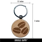 Coffee Beans Trio Engraved Wood Round Keychain Tag Charm