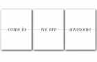 Come In We Are Awesome, Set of 3 Prints, Minimalist Office Quotes Art, Home Wall Decor, Typography Art, Wall Art, Multiple Sizes This listing is for unique UNFRAMED prints in the size of your choosing. This is the perfect gift or home decor poster print for the bedroom, over the bed, classroom, or a house warming gift. I use only the highest quality canon and HP heavyweight paper with a smooth finish. Made in the USA personally by me assuring quality. Please note this Item does NOT come framed. Thank you for stopping by my shop. ░▒▒▓ About this Listing: ▓▒▒░ - 3 High quality posters printed on Acid free high quality paper. Resolution: 300 dpi for the best quality printing. Size: 5x7", 8x10”, 11x14", 12x16" or 18x24 (Send us a message for larger and other custom sizes) All sizes are standard and easily framed. ╱╱╱╱╱╱╱╱TERMS OF USE ╱╱╱╱╱╱╱╱ - For Personal Use Only. - Colors on monitors may vary. - Frame is not included. Thanks for Visiting. Please check out our other items!