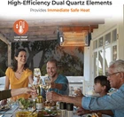 Comfort Zone Ceiling Mounted Space Heater, 90 Degree Adjustable Tilt, Black Product Details Brand: Comfort Zone Special Feature: Cool Touch Exterior, Portable, Halogen lamps (type G9, 120V., 60Hz., 25W), Overheat Protection, Adjustable Tilt Head Color: Black Form Factor: Wall Mount Indoor/Outdoor Usage: Indoor Product Dimensions: 5.25"D x 26.5"W x 14.25"H Recommended Uses For Product: Workshops Mounting Type: Ceiling Mount Room Type: Garage Burner type: Halogen Fuel Type: Electric Voltage: 120 Volts Max Temperature Setting: 90 Degrees Fahrenheit Item Weight: 8 pounds Manufacturer: Mr. Brands, LLC. Country of Origin: China Item model number: CZQTV5M Care instructions: Hand Wash Assembly required: No Number of pieces: 1 Batteries required: No Included Components: Product Manual, Halogen lamps (Type G9, 120V., 60Hz., 25W) Special Feature: Cool Touch Exterior, Portable, Halogen lamps (type G9, 120V., 60Hz., 25W), Overheat Protection, Adjustable Tilt Head Cool Touch Exterior, Portable, Halogen lamps (type G9, 120V., 60Hz., 25W), Overheat Protection, Adjustable Tilt HeadCool Touch Exterior, Portable, Halogen lamps (type G9, 120V., 60Hz., 25W), Overheat Protection, Adjustable Tilt Head See more Power SourceHeating Method: Corded ElectricRadiant Item WeightHeat Output: 8 Pounds1500 Watts EFFICIENT RADIANT HEATING: This radiant quartz heater utilizes two high-quality quartz bulbs to emit heat that is similar to the warmth of the sun. The radiant heat is directed towards nearby objects, delivering gentle and efficient warmth to living spaces, workshops, and garages. With its effective heating mechanism, this heater is an ideal choice for creating a comfortable environment. Voltage: 120.0 volts. ADJUSTABLE ANGLE FOR CUSTOMIZED HEAT: This quartz heater offers the flexibility to adjust its angle up to 90 degrees, allowing you to precisely direct the warmth to specific areas in your space. Whether you want to focus the heat towards a particular spot or cover a larger area, the adjustable angle feature ensures targeted warmth exactly where it's needed. EFFICIENT CEILING MOUNT: With its space-saving design, this radiant heater is specifically engineered for easy ceiling installation. By mounting it on the ceiling, you can optimize your floor space in crowded areas such as garages, workshops, or storage areas, ensuring maximum efficiency and convenience. BUILT-IN HALOGEN LIGHT: Enhancing its functionality, this radiant heater comes with a convenient built-in halogen light. Whether you're working on a project or need better visibility in dimly lit areas, the integrated halogen light provides ample illumination, allowing you to easily view items on your worktable and read instructions or fine print with clarity. Halogen lamps (use only type G9, 120V., 60Hz., 25W) are available at most hardware and home center stores. ENHANCED SAFETY FEATURES: The radiant heater is equipped with intelligent safety features to provide you with peace of mind. A sturdy metal safety grill effectively prevents the bulbs from coming into contact with other items, ensuring safe operation. Additionally, an integrated sensor automatically shuts off the unit if it detects overheating, protecting against potential hazards and promoting a safe environment.