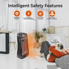 Comfort Zone Indoor Tower Space Heater, Adjustable Thermostat, Radiant Black Product Details Brand: Comfort Zone Special Feature: Cool Touch Exterior, Portable, Manual Thermostat, Overheat Protection Color: Black Form Factor: Tower Indoor/Outdoor Usage: Indoor Product Dimensions: 12.4"D x 9.06"W x 22.83"H Recommended Uses For Product: Office, Home Mounting Type: Stand alone Room Type: Office, Living Room, Bedroom Heating Coverage: 150 sq. ft. Burner type: Radiant EU Spare Part Availability Duration: 2 Years Fuel Type: Electric Number of Speeds: 3 Voltage: 120 Volts Amperage: 12.5 Amps Item Weight: 5.14 pounds Manufacturer: World and Main Country of Origin: USA Item model number: CZQTV007BK Is Discontinued By Manufacturer: No Assembly required: No Number of pieces: 1 Batteries required: No Included Components: Heater Power SourceHeating Method: Corded ElectricRadiant Item WeightHeat Output: 5.14 Pounds1500 Watts EFFICIENT RADIANT HEAT: Experience rapid and thorough heating with our practical radiant heater. Equipped with dual quartz tubes, this heater instantly emits a comforting warmth and creates a soothing glow when in use. Enjoy the focused and efficient heat output that quickly warms the people and objects in front of it, providing a cozy environment within a coverage area of 200-300 square feet. EVEN HEAT DISTRIBUTION: Experience enhanced heat dispersion with the fan-assisted feature of this heater. The fan helps to evenly and efficiently distribute the warmth throughout rooms, ensuring a comfortable and cozy environment. Whether it's your office or bedroom, this heater is a reliable choice for maintaining a pleasant temperature in any space. USER-FRIENDLY CONTROLS: The heater is equipped with two convenient top-mounted control knobs, providing you with effortless control over the thermostat and temperature settings. Adjusting the thermostat and switching between high and low temperature settings is quick and easy, ensuring optimal comfort with just a simple twist. ADVANCED SAFETY FEATURES: This heater is equipped with a range of smart safety features to ensure your peace of mind. The stay-cool molded handle allows for safe and convenient handling, while the durable metal housing adds an extra layer of protection. The tip-over switch instantly shuts off the heater if it is accidentally knocked over, and the overheat protection system prevents it from reaching unsafe temperature levels. Enjoy warmth without worry, thanks to these enhanced safety measures. SLEEK AND SPACE-SAVING: This quartz heater boasts a slim and stylish design, making it the perfect choice for smaller spaces. Its compact size allows it to fit seamlessly into any room, while the sleek black finish adds a touch of elegance that effortlessly blends with various decor styles. Enjoy both warmth and aesthetic appeal with this modern and space-saving heater. Powerful and Efficient Radiant HeaterCreate a warm and comfortable space for work or relaxation with this Comfort Zone Radiant Quartz Tower Heater. By lowering your home thermostat slightly and using this heater to warm just the room you are occupying, it can lead to significant savings on your heating bills. The heater employs dual quartz tubes, which heat up quickly and give off a warm glow when in use.Practical Settings and Convenient ControlsThe quartz heater offers two different heat settings. It is fan-assisted to help disperse the heat more evenly throughout your space. You can switch between the high and low heat settings by simply turning a knob at the top of the unit. A second knob allows you to easily adjust the thermostat to just the right temperature for your space. Advanced Safety FeaturesA tip-over switch automatically turns the heater off if it is knocked over to help prevent fires, while a built-in sensor helps to prevent the unit from overheating. A molded handle makes it easy to carry, and the stay-cool handle and housing allow you to safely transport it from room to room. Stylish and Compact Modern DesignThe Comfort Zone Quartz Heater has a space-saving design that fits into small rooms with ease. It comes in a sleek black finish that effortlessly complements a wide variety of different décor styles.