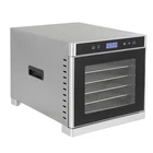 Commercial Food Dehydrator 6-Tray Stainless Steel Fruit Meat Jerky Dryer US Description Committed to helping you quickly dehydrate various ingredients, our food dehydrator uses a variety of high-quality materials and a wire drawing process, laying a quality foundation for long-term use. The 700w power and high-quality heating pipe can enable you to start a delicious journey in a short time and better explore the beauty of life. Key Features Build to Last: Premium 201 and 304 stainless steel, silicone, and wire drawing process makes this produc t solid, safe, heat-resistant , impact-resistant , rustproof, fingerprint-resistant , and corrosion-resistant , so it can keep beautiful and practical for a long time. High Efficiency: The 700W pure copper motor, all-metal interior that efficiently retains heat for shorter drying time, a powerful fan that promotes air circulation, high-quality heating element, and reasonable structure can realize uniform and quick heating and dehydrating , lock in the natural taste, nutrition, and freshness of the ingredient, and explore more food possibilities. Suitable Capacity: The overall size of 13.3*17.7*12.5inch and 6 trays with a strong bearing capacity allow you to put in enough ingredients at once , avoiding frequent operations, so you can dehydrate multiple foods at home without going to expensive stores, saving your costs. The 1.57-inch tier spacing provides more space for thick foods. Safety Guard: The overheating, overvoltage, overcurrent, and automatic shutdown protection functions, temperature controller, top insulation layer to prevent burns, and heat dissipation holes on both sides can effectively guarantee safety during use, so you can use it with confidence. Carefully Designed: The embedded LED display screen can effectively reduce damage to the machine during transportation, making it easy for you to clean, and it can also display temperature and time in real-time, making it easy for you to view and adjust. After the product is powered on, you can also switch between ℃ and ℉ by long pressing the “+” and “-” keys, meeting the needs of different needs. Convenient and Intelligent: You can directly use it without installation. Through the corresponding knobs, detailed manual, and recipe , you can adjust the temperature within the range of 95-167 ℉( increase by 9 ℉ each time ), and the time within the range of 1-24 hours( increase by 30 minutes each time ) to make different foods, even the elderly and beginner can easily grasp it. The magnetic door makes it easy for you to open and close the product. Strong Stability: The horizontal design and anti-skid feet at the bottom can provide additional support, making the item more stable and ensuring smooth operation. Effortless Cleaning: Simple construction and all stainless steel body allow you to easily wipe away dust and residue with a towel. The removable trays and drip tray can be thrown into the dishwasher for quick cleaning. Quiet Environment: The volume below 50 decibels during operation will not bring you an uncomfortable experience or affect others. Ideal Gift: The bright silver and smooth lines make this product modern and fashionable, so this powerful product is an ideal choice for various holiday gifts for family, friends, and lovers. Easy to Store and Move: A small size of 13.3*17.7*12.5 inches, stackable trays, and handles on both sides make it easy to store and move. Protective Packaging: The foam can better protect your product during transportation and make it delivered to you completely to the greatest extent. Healthy Life: It replaces the sun exposure mode and adopts healthier, simpler, and more economical cooking methods with less waste, providing you with nutritious, purely natural, low calorie, and non-processed foods without various additives and preservatives, laying the foundation for your and your family’s health. Details Round Corners: Compared with traditional square corners, an arc design can better care for your skin. Long Power Cord: The 3.94ft cord allows you to have enough disposable length for easy placement. Clear Window: It allows you to clearly observe the internal situation at any time and make timely adjustments to create more exquisite food. Practical Silicone Pad and Food Clip: Covering the former on the tray can effectively promote food detachment, reduce adhesion, and reduce cleaning difficulty. The latter can help you flip food and protect your hands from burns. Application This product can accommodate various fruits, vegetables, meat, herbs, grains, beans, snacks, dog food, breadcrumbs, herbs, flowers, etc., and easily lock in minerals and vitamins in food. It is very suitable for families, gardeners, athletes, outdoor enthusiasts, and health-conscious enthusiasts. How to Use Wash and slice the fruit . Load fruit evenly into the dehydrator. Set the time and temperature. Wait until the fruit has finished drying. Specification Color: Silver Shape: Rectangular Finish Type: Wire Drawing Plug Type: US Standard Material: 201 and 304 Stainless Steel, Silicone Assembly Required: No Mount Type: Countertop Is Dishwasher Safe: Yes(Silicone Pad and Tray) Screen Type: LED Power Source: Corded Electric Usage: Household and Indoor Only Model: FD-06DGP-L Rated Voltage: 110V Rated Frequency: 60Hz Rated Power: 700W Number of Items: 1 Temperature Range: 35-75℃/95-167°F(Increase by 9 ℉ Each Time) Time Range: 1-24 Hours( Increase by 30 minutes Each Time ) Volume: Less than 50dB Net Weight: 8.9kg/19.62lbs Gross Weight: 10.3kg/22.71lbs Product Size: 33.7*45*32cm/ 13.3*17.7*12.5 inch Each Tray Size: 30.7*30.7cm/12.1*12.1inch Package Size: 52*39.5*39cm/20.47*15.55*15.35inch Length of Power Cord: 1.2m/3.94ft Tier Spacing: 4cm/1.57inch Package Included 1* Food Dehydrator 1* Power Cord 6* Trays 1* Silicone Pad 1* Food Clip 1* Engliosh Recipe 1* English Manual 1* Oil-drip Pan Notes Please read the manual and the tag carefully and pay attention to the safety precauti