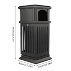 Description An exquisite and practical garbage can not only helps to keep the environment clean and fresh but also beautifies the style of the environment. This garbage can is made of high-quality galvanized sheets and the exquisite spraying and baking paint process can adapt to different indoor and outdoor environments to serve you for a long time. Key Features Exquisite Appearance: The elegant, antique black surface with smooth lines and hollow panels create an exquisite appearance, which can add a classical style to parks and other venues. High-quality Material: The surface of a high-quality galvanized sheet is exquisitely sprayed and baked, which greatly enhances its ability to resist corrosion and impact, enabling it to adapt to different outdoor/indoor environments. Stable Stru Welcome Black Garbage Can Description An Exquisite and Practical Garbage Can Not Only Helps to Keep the Environment Clean and Fresh but Also Beautifies the Style of the Environment. This Garbage Can Is Made of High-quality Galvanized Sheets and the Exquisite Spraying and Baking Paint Process Can Adapt to Different Indoor and Outdoor Environments to Serve You for a Long Time. Key Features Exquisite Appearance : the Elegant, Antique Black Surface with Smooth Lines and Hollow Panels Create an Exquisite Appearance, Which Can Add a Classical Style to Parks and Other Venues. High-quality Material : the Surface of a High-quality Galvanized Sheet Is Exquisitely Sprayed and Baked, Which Greatly Enhances Its Ability to Resist Corrosion and Impact, Enabling It to Adapt to Different Outdoor/Indoor Environments. Stable Structure : Thickened and Enlarged Base and Regular Rectangular Structure Provide a Stable Structure for the Product to Improve Wind Resistance . Hands-free Garbage Disposal : the Double-sided Enlarged Arch Opening Design Not Only Facilitates the Disposal of Larger Garbage but Also Allows You to Dispose of Garbage Without Touching the Lid, Which Is More Convenient and Hygienic. Large Capacity : the Large Deep Liner Has a Large Capacity of 8.8 Gallons, Which Makes It Suitable for High-traffic Areas Such As Parks, Schools, or Amusement Parks. Large-capacity Trash Cans Can Keep the Ground Clean and Trash-free for a Long Time Without Frequent Cleaning. Installation-free : the Product Is Shipped As a Whole so It Can Be Used upon Receipt Without Installation, Which Is a Time Saver. Stable and Secure : the Lid with Lock Enhances Security to Prevent Theft. for Weather Resistance and to Prevent Vandalism, the Bottom of Weather-resistant Trash Garbage Can Be Fastened with Equipped Screws to the Pavement. Thoughtful Design : This Floor-standing Garbage Can Is a Versatile Combination of an Ashtray and Trash Receptacle, Not Only Offers Convenient Hands-free Disposal of Cigarettes and Trash at One Location but Also Can Extinguish and Discard Cigarette Butts for Effective Fire Prevention. Easy to Clean : the Smooth Surface, Simple Structure, and Removable Liner Make It Easy to Clean. You Just Need to Wipe It Gently with a Damp Cloth. Protective Packa ging: the Sturdy Cardboard Box Provides Full Protection for the Product to Avoid Damage in Transit. Customer Service : We Aim to Provide Quality Products and Services. If You Have Any Problems, Please Feel Free to Contact Us. We Will Reply and Solve the Problem for You As Soon As Possible. Details Flip Lid : the Top Flip Lid Not Only Prevents Rain and Snow from Entering but Also Makes It Easy to Clean up the Garbage. Carrying Handles : the Two Carrying Handles of the Inner Liner Not Only Facilitate Movement but Also Prevent Hands from Directly Touching the Garbage. Round Edges : the Round Edges Can Protect Hands from Scratches. Application It Applies to Indoor or Outdoor Places, Such As Patios, Parks, Lobbies, Shopping Malls, Courtyards, Garages, Offices, Halls, Etc. Specification Material: Galvanized Sheet Color: Black Process: Spraying Plastics and Baking Paint Style: Modern Shape: Rectangular, Cylindrical Opening Mechanism: Open-top Special Feature: Entrance, Anti-slip Capacity: 40l/8.8gal Gross Weight: 16kg/35.3lbs Net Weight: 15kg/33lbs Package Size: 92*42*42cm/36.22*16.53*16.53in Product Size: 40*40*90cm/15.8*15.8*35.5in Package Included 1*Garbage Can 1*Key 2*Screws Notes For Safety, Please Completely Extinguish the Cigarette Before Putting It into the Ashtray. Please Allow the Slight Color Difference Caused by the Shooting Light and 1-3cm Error Due to Manual Measurement. Please Make Sure You Do Not Mind Before You Order. Brown Garbage Can Description An Exquisite and Practical Garbage Can Not Only Helps to Keep the Environment Clean and Fresh but Also Beautifies the Style of the Environment. This Garbage Can Is Made of High-quality Galvanized Sheets and the Exquisite Spraying and Baking Paint Process Can Adapt to Different Indoor and Outdoor Environments to Serve You for a Long Time. Key Features Exquisite Appearance : the Elegant, Antique Brown Surface with Smooth Lines and Hollow Panels Create an Exquisite Appearance, Which Can Add a Classical Style to Parks and Other Venues. High-quality Material : the Surface of a High-quality Galvanized Sheet Is Exquisitely Sprayed and Baked, Which Greatly Enhances Its Ability to Resist Corrosion and Impact, Enabling It to Adapt to Different Outdoor/Indoor Environments. Stable Structure : Thickened and Enlarged Base and Regular Rectangular Structure Provide a Stable Structure for the Product to Improve Wind Resistance . Hands-free Garbage Disposal : the Double-sided Enlarged Arch Opening Design Not Only Facilitates the Disposal of Larger Garbage but Also Allows You to Dispose of Garbage Without Touching the Lid, Which Is More Convenient and Hygienic. Large Capacity : the Large Deep Liner Has a Large Capacity of 8.8 Gallons, Which Makes It Suitable for High-traffic Areas Such As Parks, Schools, or Amusement Parks. It Can Keep the Ground Clean and Trash-free for a Long Time Without Frequent Cleaning. Thoughtful Design : This Floor-