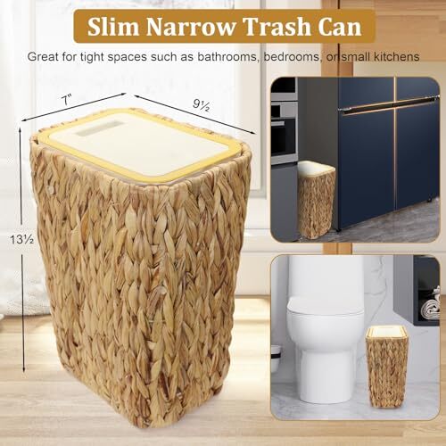 Menu 1. We require immediate payment. 2. We currently accept payment via eBay managed payments only. 3. Once payment is cleared, we will dispatch your shipment within 1-3 business days. Please refer to the "Shipping" tab for more information regarding shipping speed to your destination. Slim Trash Can with Lid, 3 Gallon Small Trash Garbage Can Skinny Rubbish Waste Bin Basket with Press Top, Narrow Woven Wicker Wastebasket Wastepaper Basket for Bathroom Bedroom Office Product description Great Size for Tight Spaces: The compact and sleek design of this slim narrow bathroom trash can makes it great for tight spaces such as bathrooms, bedrooms, or small kitchens. Measuring 10*7.0*14 inches. The slim profile of the minimal rectangular trash can allows the small bedroom trash can to fit in narrow areas, while the outer handwoven wicker small bedroom garbage can can easily match your interior décor, bringing natural beauty to any interior space. Keep Your Space Fresh: The boho bathroom thin trash can with lid traps garbage smells inside to avoid garbage exposure and odors. saying goodbye to those dirty and unpleasant smells. small pet-proof trash can with lid for bedroom ensure your space always smells fresh and clean. Clean lines and smooth surfaces of diaper waste basket make it easy to keep clean and maintain. Pets Proof Pop-up Lid Trash Can: Simply press the lid to open or close it, making disposal a breeze. The under sink slim trash can with lid provides a secure barrier to Prevent unwanted access by pets like dogs or cats while ensuring your furry friend stays away from trash. Laundry Hamper and Waste Basket 3 in1: You can disassemble it into a rattan laundry hamper and garbage basket at any time to meet your needs in all aspects. Whether used as a trash can or wastebasket, flower pot cover, dirty clothes bucket, garbage can, miscellaneous basket, storage basket, etc., Our 3-gallon wastebaskets are a great choice. What rooms do you need a wastebasket in? The simple answer is every room! From the kitchen, w most trash is produced, to the living room, bedrooms, office, den, dining room, and even the hallway. By increg the number of wastebaskets in your house, you reduce the probability that trash will accumulate in the wrong places, whether used as a trash can or wastebasket, flower pot cover, storage, or decoration PLEASE MESSAGE US IF YOU HAVE ANY OTHER QUESTIONS, AND MANY THANKS FOR READING ALL OF THIS. Copyright ©#. All Rights Reserved.