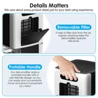 【Advanced Home Dehumidifiers】Our dehumidifier for home use semiconductor condensing technology with quiet working characteristics to effectively remove moisture from the air,get rid of dampness,creating a comfortable home environment for you. 【Ultra-Quiet Dehumidifier】 Using an upgraded silencer motor, the noise is as low as 28db,making it quiet all night.The 7 changing colorful lights could aslo serce as night light 【Automatic Shut-off and Overflow Prevention】 Our dehumidifier for bathroom has an automatic shut-off function when the water is full: firstly the warning sound will sound 5 times; at the same time the red light will come on and flash, then the dehumidifier will automatically shut off. It is safe and convenient when you are not at home. 【Simple Control Panel】This dehumidifier for basement has only 2 control buttons, one is the ON/OFF switch and the other is the light control, getting rid of the complicated design and a lot. 【Space Saving and Portable Room Dehumidifier】Our small dehumidifier measures about: 6.1(L)*6.1(W)1*9.25(H) inches, net weight about: 3.2 pounds, with built-in handle, you can easily move it anywhere you want, home dehumidifier perfect for controlling humidity in small rooms, such as bedroom, bathroom, basement, RV, etc.