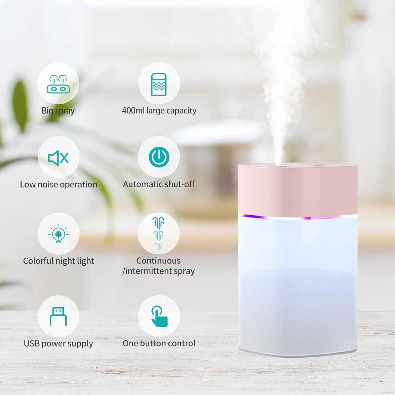 Store New Arrivals Add to Favorite View Feedback Contact Small Humidifier, Mini Humidifier for Plant, 400Ml Cool Mist Humidifiers for Bedroom, Desk Personal Humidifiers for Indoor Office Car, Portable Humidifier for Double Nourishment-Pink Description Item model number ZC400 Room Type Office, Bedroom Material Plastic Power Source Corded Electric Color Pink Control Method Touch Brand Kiusiy Capacity 600 Milliliters Runtime 360 minutes Country of Origin China Operation Mode Automatic Item Weight 3.52 ounces Shape rectangular prism Voltage 1.1E+2 Volts Model Name ZC400 Filter Type Wick Included Components 1 X User Manual Special Feature Night Light, Quiet, Auto Shut Off Product Dimensions 3.2"D x 3.2"W x 5.2"H Manufacturer Kiusiy Small Humidifier - Effectively improves dry skin and helps you reduce skin peeling, nosebleeds, and other troubles. It also helps plants replenish water. Automatic Shutoff - The mini plant humidifier will automatically shut off after 6 hours of operation to avoid running without water. Two spray modes: continuous spray and intermittent spray. Quiet Humidifier - Low-noise operation lets you sleep undisturbed. Colorful LED night lights make you not afraid of the dark at night. Press and hold the night light for 2 seconds to turn it off or on. Wide Application - Size: 3.2*3.2*5.2 in, 400 ml. Portable personal humidifier for bedroom, indoor, office, desk, car, travel, and more. Note - ①Please make sure the cotton core has soaked before you turn it on. ②The humidifier needs to be connected to a power source when used. ③ Do not use essential oils, perfume, or distilled water, which will cause the cotton swab to clog and the Humidifier to be unusable. ④Any questions or problems, please feel free to send an email to us. Product Description WHY should I need a small humidifier? Humidifier add moisture to improve air quality around you. Mini size but large capacity and long-lasting mist greatly helps you reduce dry skin, improve breathing problems, relieve dry throat, relieve stress, and more. Warm Tips: 1. The humidifier is not chargeable, please connect the USB cable when using. 2. When using the humidifier for the first time, please remove the filter and soak it for 10 seconds before installing it. 3. Do not add essential oils, perfume, which will cause the filter cotton swab to clog and the humidifier to be unusable. Specification Power: USB Supply Voltage: DC 5V-1A Mode: Continuous/ Intermittent Spray Auto Shut-off: 3.5H Capacity: 400ML Size: 3.2*3.2*5.2IN USB cord length: 31.5IN ABOUT US We offer the best prices around on high quality products. Our E-store includes media such as books, movies, music and games while offering electronics, toys, sporting apparel, clothing, tools, general home, garden items and more. SHIPPING We are always working hard to ensure your package arrives as soon as possible. Please understand that some factors like weather, high postal traffic, and the performance of shipping companies are outside of our control. We offer free shipping to the lower 48 states and ship within 2 business days of payment, usually sooner. We do not accept P.O. Boxes. Please provide a physical address. RETURNS We offer a 30-Day Return Policy on items which you are not completely satisfied with. You have the option for a full-refund or an exchange of the item. No returns are available on items shipped outside of the USA. PAYMENT We accept PayPal. CONTACT US This page content is yet to come Please ad us to your favorite seller and visit again later Thank You CUSTOMER SATISFACTION We try our very best to make sure every customer is completely satisfied. If there's a problem, message us! We're happy to help.