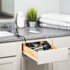 Clear the clutter and charge your electronic devices inside of a drawer with the Compact In-Drawer Outlet Charging Station (LF-DOC1) from ! Enjoy this safe and easy solution to in-drawer power access with this versatile product featuring 2 USB-A ports, 2 USB-ports, and 1 AC outlet. Works well with desk drawers, kitchen cabinets, bathroom vanities, bedside tables, and much more! Cord Concealment: Clear the clutter on your counter or workspace with this in-drawer electrical charging station. Perfect for office drawers, cabinets, vanities, nightstands, and more Built-in Power Station: The internal power strip lets you conveniently charge your devices while storing them! Features 2 USB-A, 2 USB-, and 1 standard 110V socket to accommodate a variety of electronics Cutout Placement: Requires 0.75” of space from the drawer’s interior wall corner and installs to standard and custom drawer sizes alike Cable Management: Zip ties are to keep the power strip cable neat and organized while routed through the cable guide Assembly: Step-by-step instructions and hardware are provided for assembly and installation