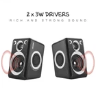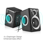【SIMPLE SQUARE STRUCTURE】ABS high quality plastics make it shiny without murky grey. Black color with the grey oval ring, make speakers show the beauty of stereo. Adopted the low-voltage digital power, the maximum power can be 5W, ensure the sound clear, bright, rounded and thick. Small Body(5.4x3.2x.3.6inch) with powerful audio. 【RICH AND STRONG STEREO SOUND PROVIDE SUPPER SOUND QUALITY】Built-in 4 x bass diaphragm, closed Cavity and Low Frequency Aid design, compared to other small speakers. The unique acoustic resonator structure using the enclosed low-frequency aid design makes the sound more penetrating and powerful, to make up for the lack of bass of the Mini 2.0 speakers. 【COMPATIBLE WITH MULTIPLE DEVICES】MP2000 2.0 stereo speaker which is with 3.5mm audio interface and USB powered,compatible with most music players, , iPad, Galaxy phone or tablet, MP3 player or other device, just plug into your device to listen to your music at full volume. USB power supply, can be directly plugged into the computer USB port to take power, can also connect most of the 5V charger power supply. 【NOTE】Restricted to the small volume, bass effect still can’t compare with big speakers and professional subwoofer. To enjoy the best stereo effect need to separate 2 speakers, for example, the two speakers are separated from the distance of 1 meter, the two speakers and people should be 1 meters distance, then the two speakers and people is an equilateral triangle, such a position, you will hear the best stereo effect. 【12 MONTHS 】computer speakers provides 12 months manufacturer's and unconditional 30 days money-back .